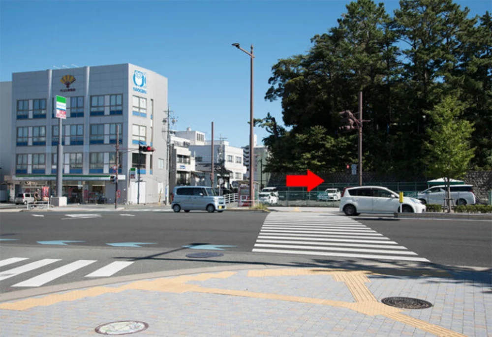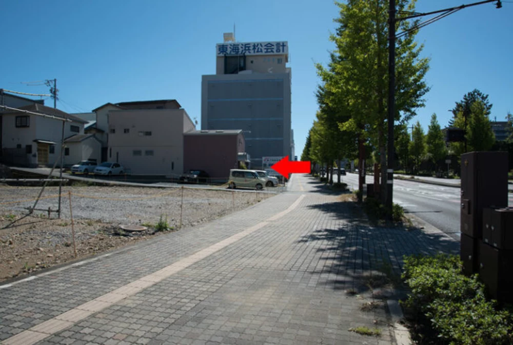 ホテルコンコルドと浜松城公園駐車場の間の通りを東へ向かって、最初の信号を渡って右へ(南へ)進みます。