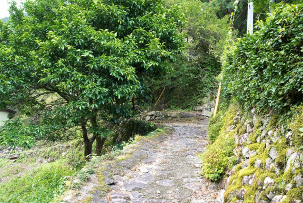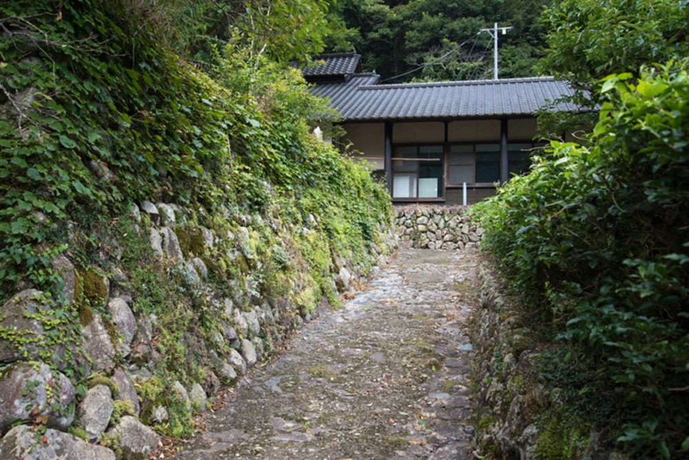 おすすめは、つきあたりを右に進んだ石畳のコース。通学路であったであろう石垣に囲まれた小道も情緒があります。