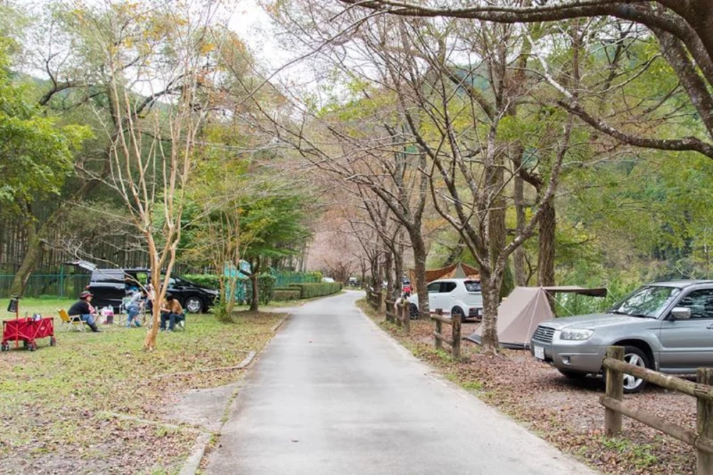 気田川に沿って設けられた、車一台分程度の幅のサイトです。区画エリア、フリーエリアと通路を隔てているので、よりプライベートな空間で楽しみたい方におすすめです。