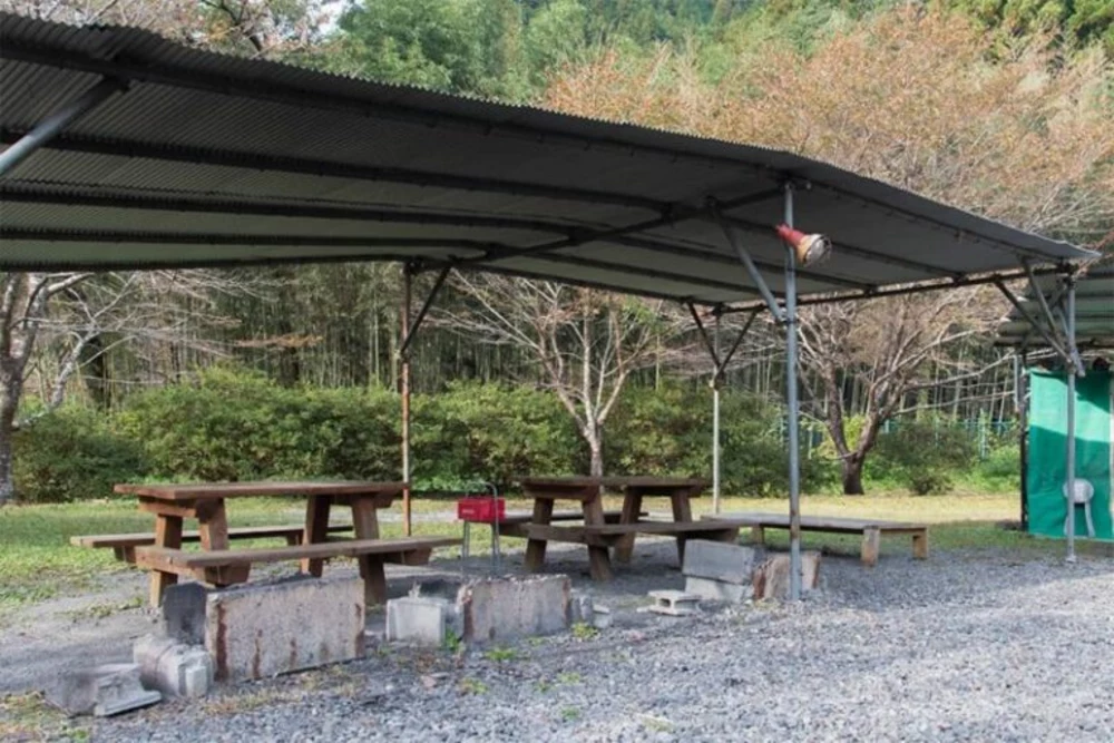 テーブルとベンチ、かまどがセットで設けられています。屋根付きなので雨の日でも安心。また、洗い場も隣接しているので、利用後の片付けにも便利です。