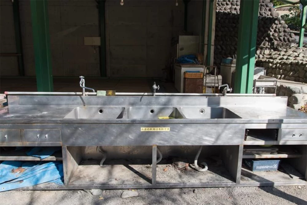 広大な敷地ですが、洗い場はこの1ヶ所だけです。水の持参や洗い物を減らすなどの工夫をして利用を最小限にしたほうが、かえって快適かもしれません。