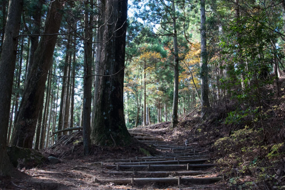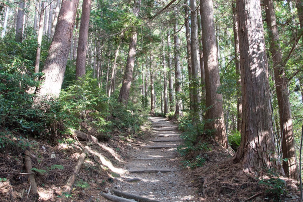 ひたすら一本道の山道を登っていきます。一歩で一段登っていた段差も次第に足が揃い出す始末…。体力はまだ余裕があるのですが、急に息切れが始まります。