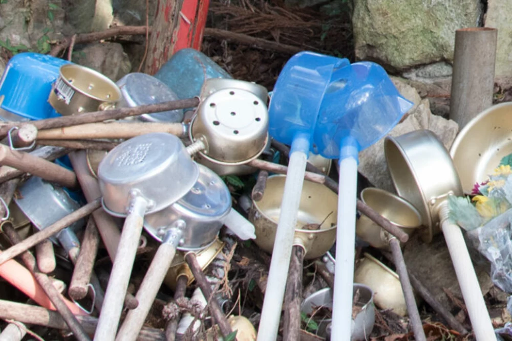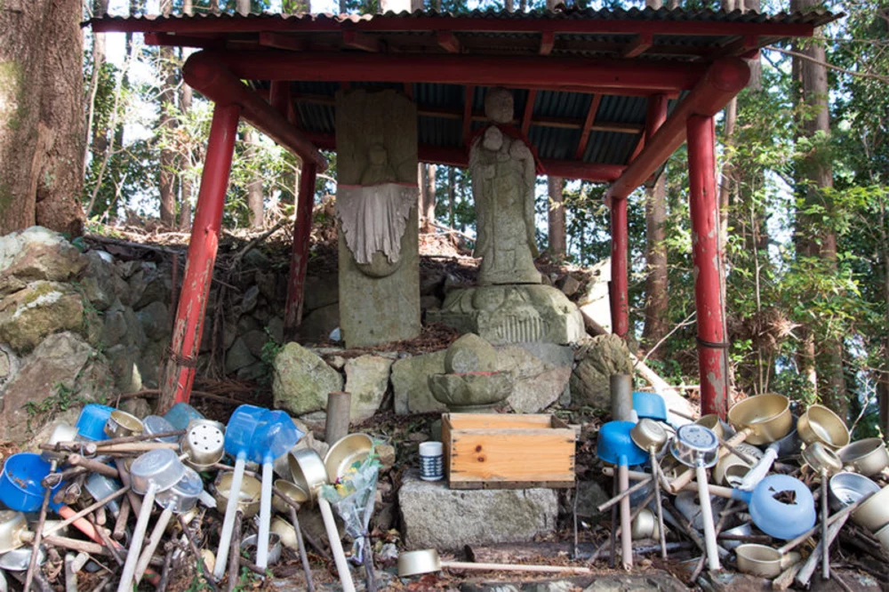 安産成就のお礼の柄杓がたくさん。よく見ると、どの柄杓も穴が開けられていました。富士山ビューポイント