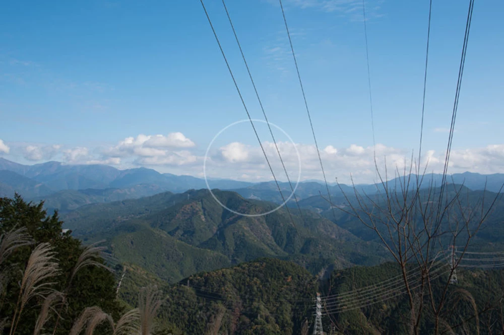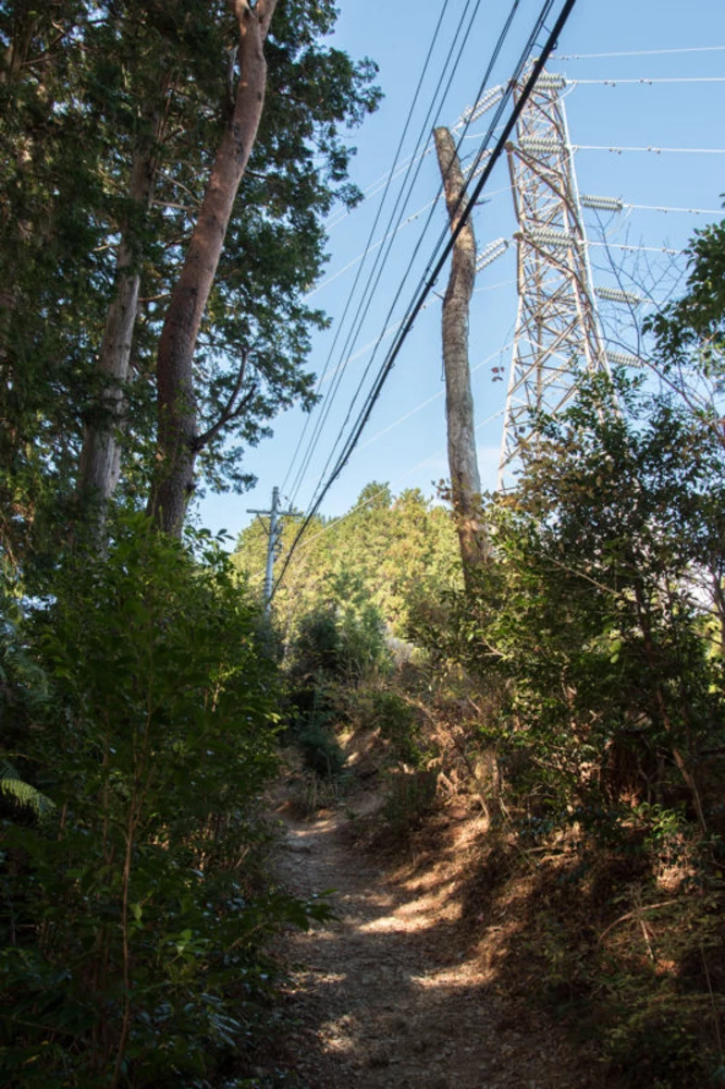 山道のほとんどは杉の林道なのですが、一カ所だけ、鉄塔が建っている所が開けており、そこから富士山を見ることができます。