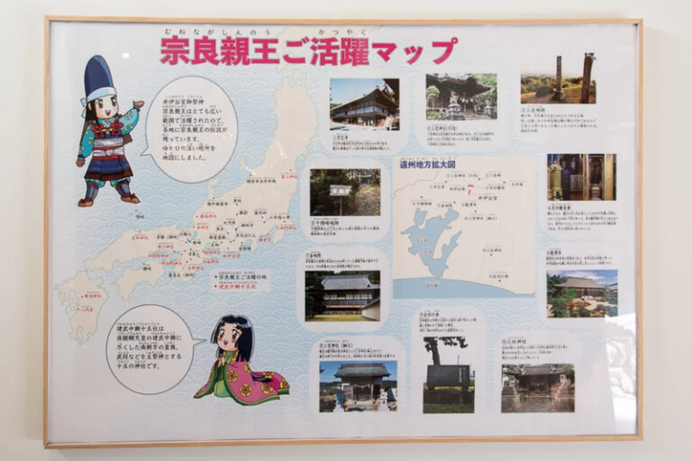 資料館には御祭神宗良親王についてマンガを用いてまとめたパネルや、神社の歴史に関する資料等を展示されています。