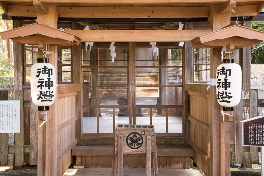 宗良親王及び、御子尹良親王(ゆきよししんのう)を補佐し、忠勤に努めた功績により、井伊道正公とその子高顕公が祀られています。お賽銭箱には伊井橘と(控え目に)井桁の井伊家の家紋があります。