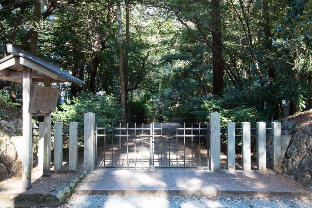 御墓は宮内庁所管地で、普段は写真のように門が閉められており、入ることはできません。毎年9月22日の例祭(御祭神の御命日)と正月期間(1日~5日まで)のみお参りできるように開放しています。