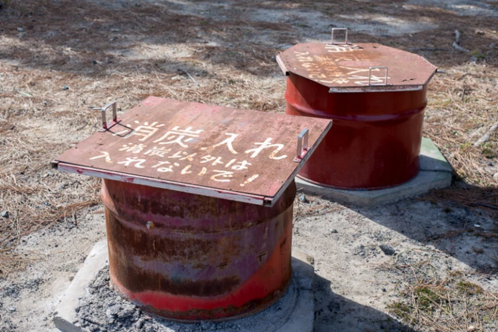 洗い場の隣にある消炭入れ。東側の洗い場横にもあります。コインシャワー