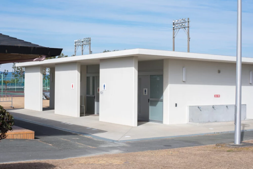 東側のトイレはキャンプサイトに面した仮設トイレとクラブハウス(コインシャワー)裏側に新設されたトイレがあります。