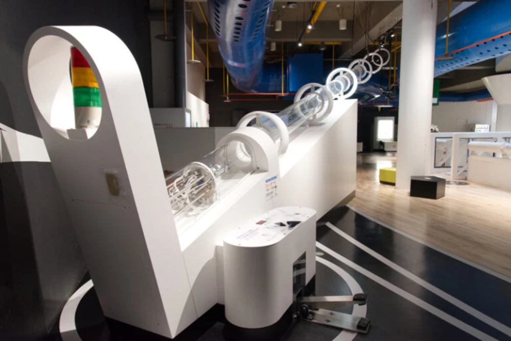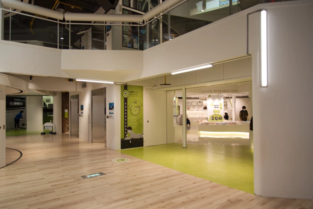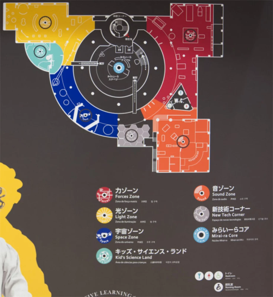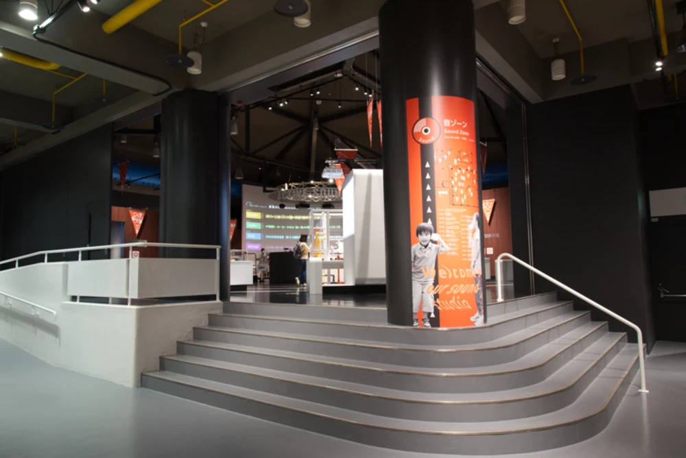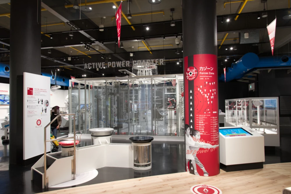 2階は、力ゾーン、音ゾーン、宇宙ゾーン、光ゾーンの4つのゾーンと、浜松の地元企業から提供された小型展示から成り立っています。どこから回るかは自由です。