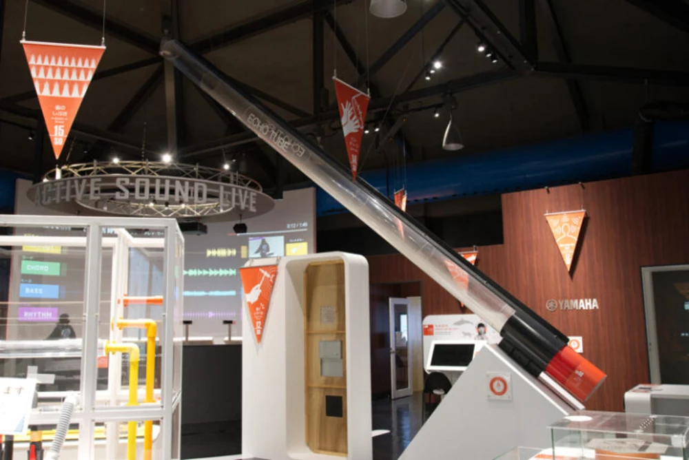 「エコーチューブ」は、やまびこのように時間差で音が聞こえる反響を体験できます。