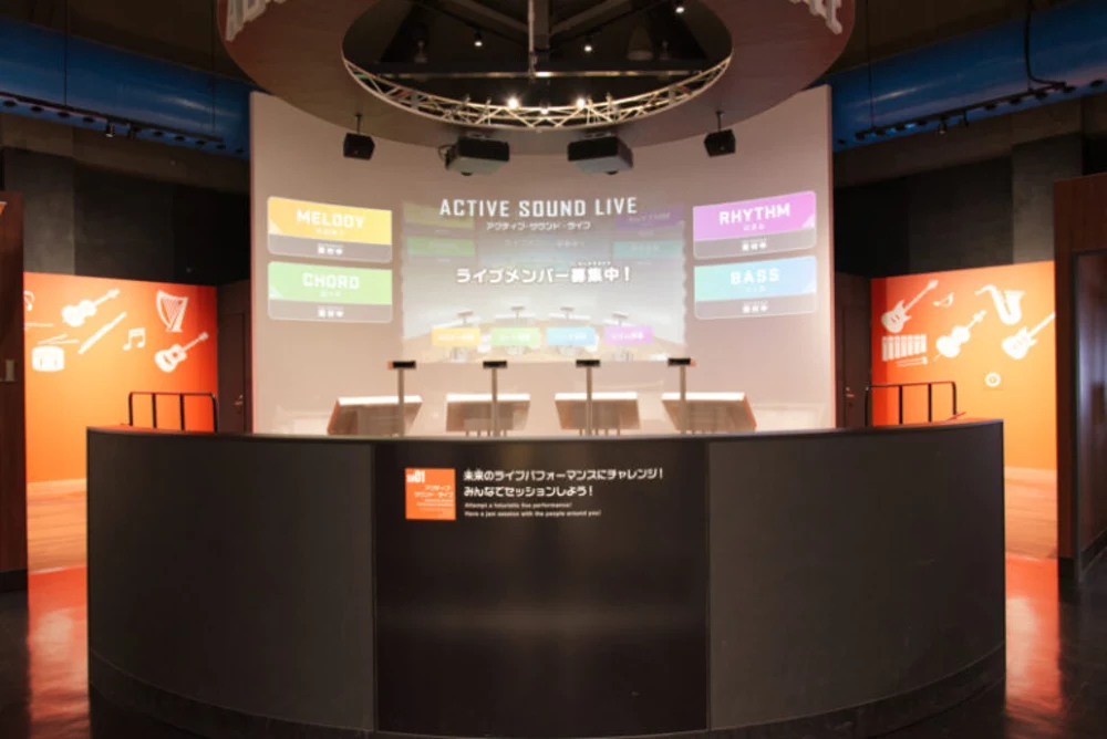 「アクティブ・サウンド・ライブ」は、最大4名が体の動きで演奏できる展示です。レッツ・プレイ・ミュージック!