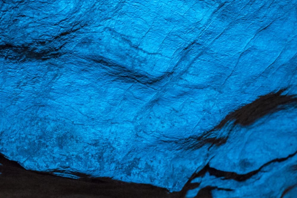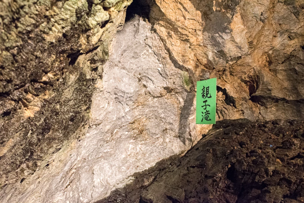 触ると柔らかいのでは?と錯覚してしまう岩肌。(青いのはライティングのせい)親子滝