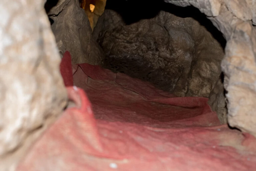 入口でヘルメットが無料で貸し出されています。洞窟内は身を屈めないと通れない箇所があり、岩に何度か頭をぶつけました。(被っててよかった!)子供用も用意されていますので、必ず着用しましょう。
