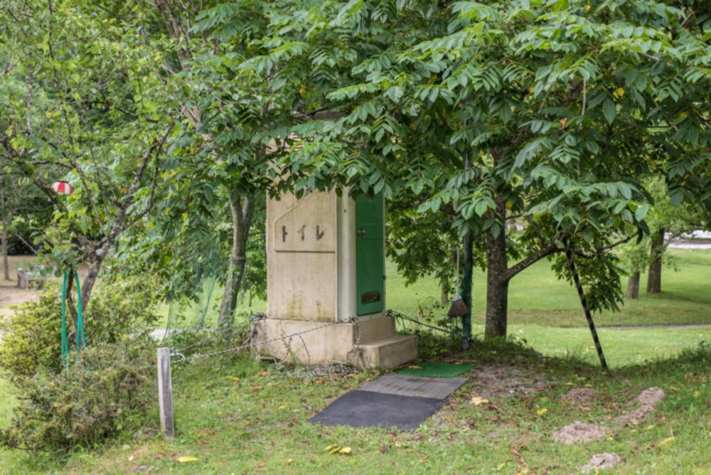 受付の隣にトイレがあり、くみ取り式ですがしっかりと掃除がされています。キャンプサイト内に仮設トイレが2箇所ありますが、女性や子供にはちょっと使いづらいかもしれません…。