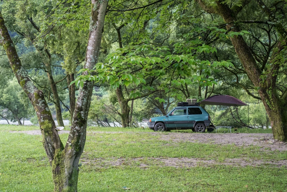 写真はどう見てもゴルフ場ですが(笑)グリーン以外であれば車の乗り入れ、テントの設営が可能です。全面フリーサイトで区画はないので、先着順で好きな場所を選べます。現在はキャンプ場専用ですが、グリーンは手入れがされていますし、コロナが落ち着けばまたゴルフ場を再開されるのかもしれませんね。