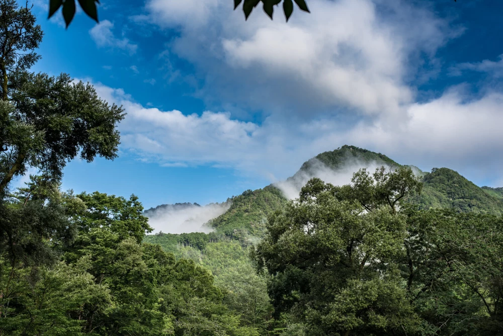 翌朝、前日の雨のおかげ?で山にかかった幻想的なもやを見ながら朝食をとることができました。