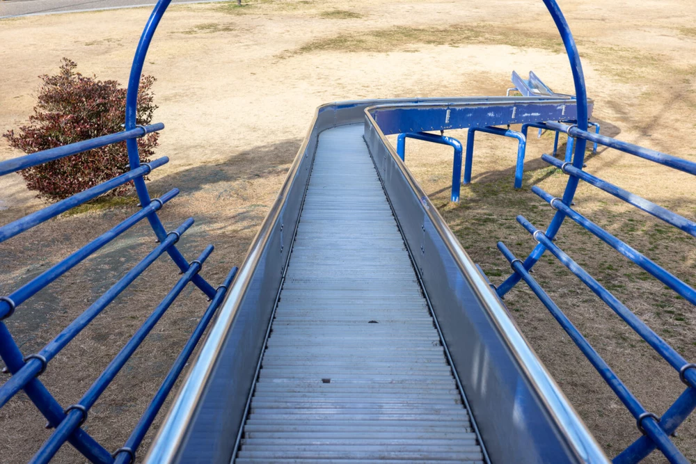 いざという時の船からの脱出はちょっと長めのローラーすべり台。