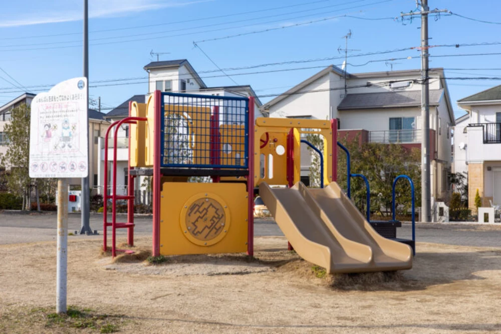 駐車場となりの遊具広場。たくさんの遊具にどれから遊ぼうかと思わず目移りしてしまいます。