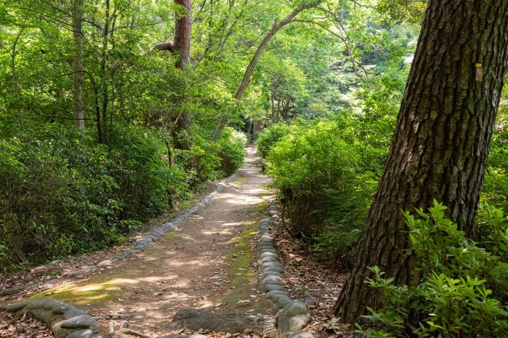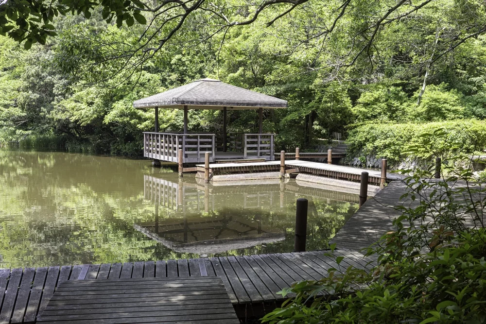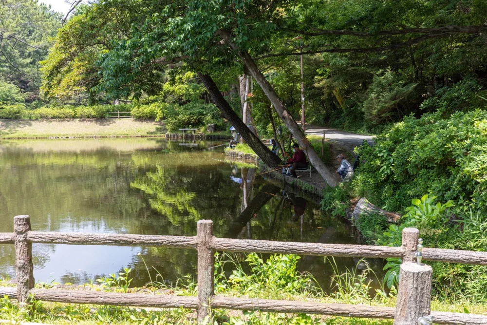 池の周りは遊歩道になっていますが、木々は鬱蒼と繁っているので、日中は森林浴が楽しめる明るさですが、夕方には薄暗く少し不安に感じるかもしれません。そして、夏には虫よけ対策が必須です。