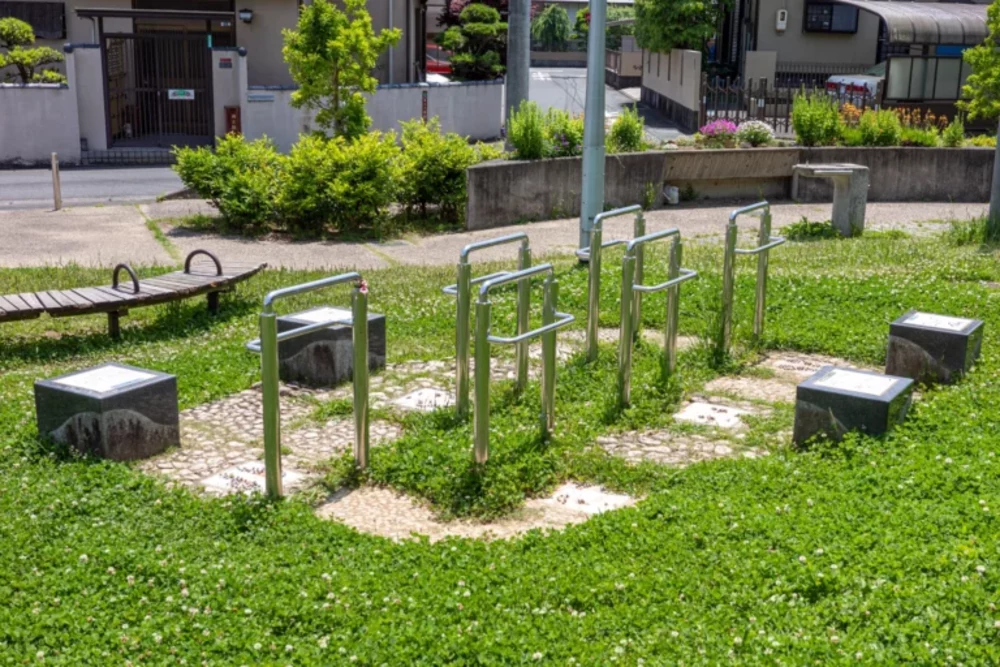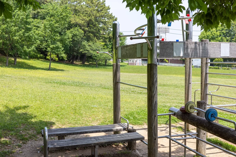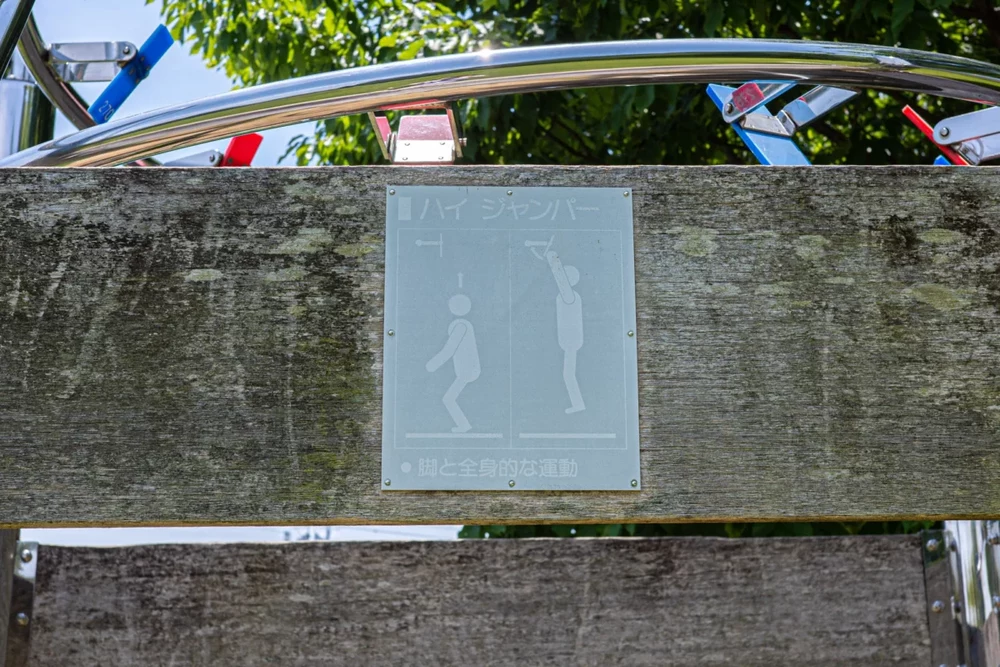 複合健康遊具でした。使い方次第で色々なトレーニングができそうです。豊かな自然の中をウォーキングしたあとに、ストレッチや筋トレまでできる環境が揃っているのはうれしいですね。