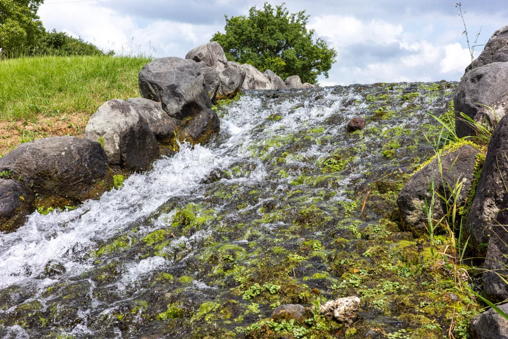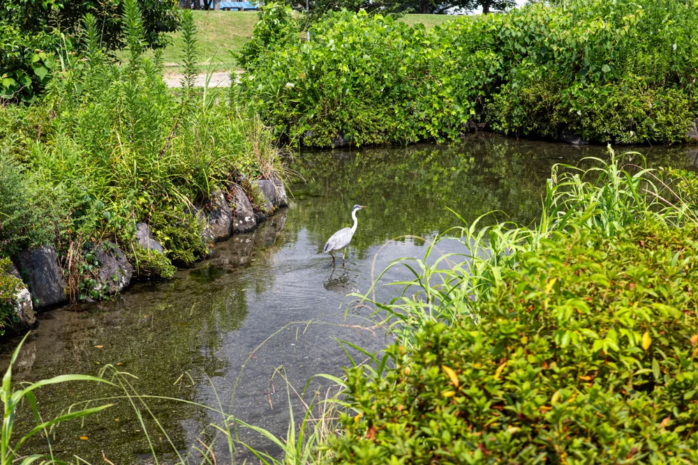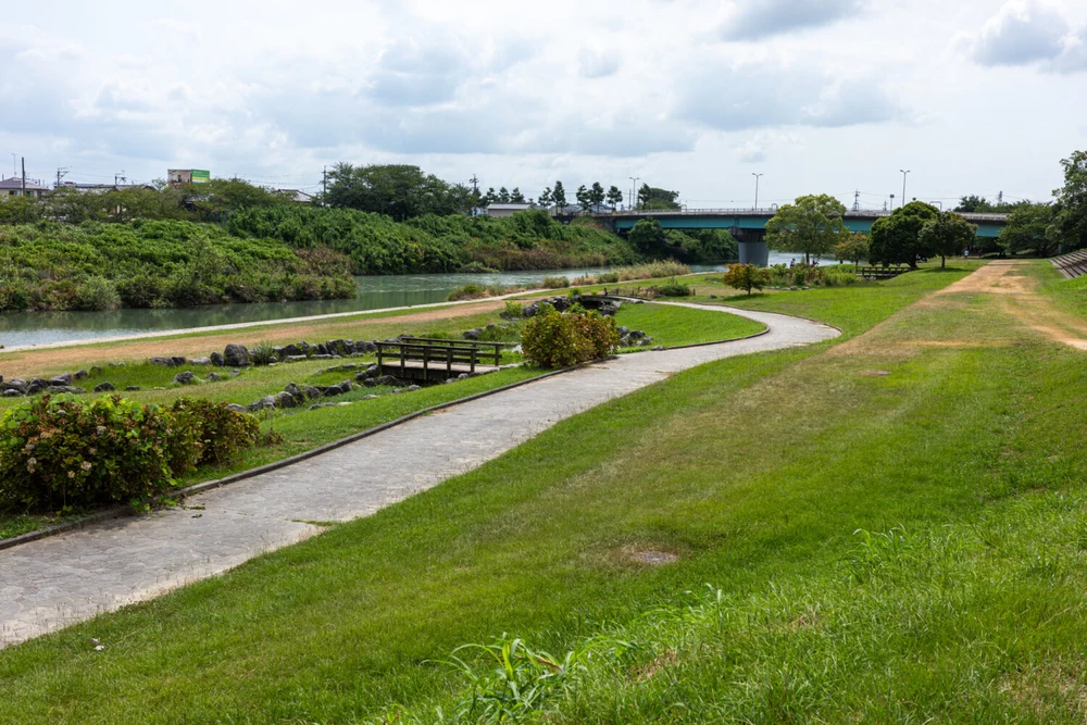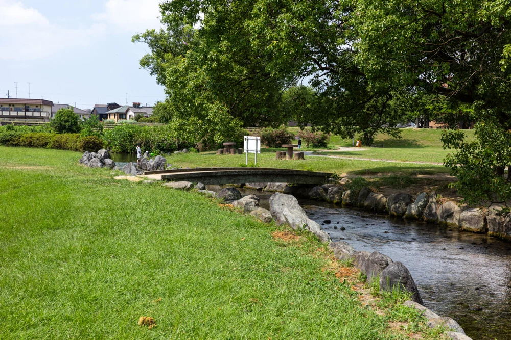 馬込川みずべの公園は、浜松市中区上島にある馬込川の河川敷を利用した公園です。園内には馬込川の隣を沿うようにつくられた、細長い人工小川が流れています。小川の水深は浅く、流れも穏やかなので、小さな子供でも安心して水遊びができます。また、小川には魚やカニなどの生き物もいるので、水遊びをしながら自然観察も楽しめます。
