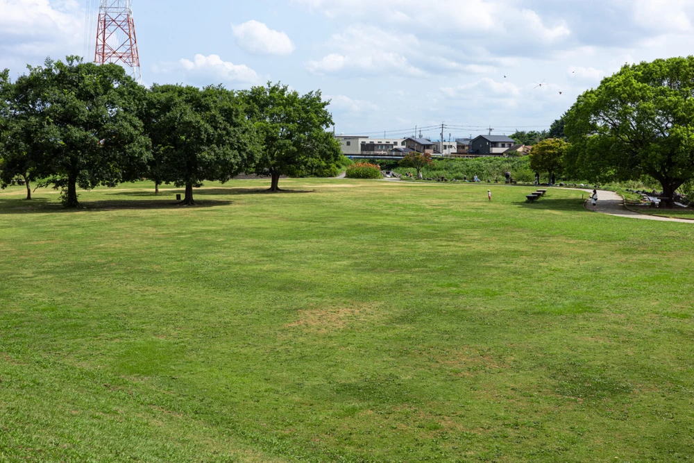 駐車場隣りにある、きれいに整備された芝生広場。遊具はありませんが、ボール遊びやバドミントンには十分な広さです。木陰は暑い季節には人気のスポット。レジャーシートを広げて、お弁当やおやつを食べたり、読書したり、ゆっくりと過ごすことができます。