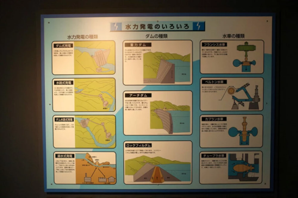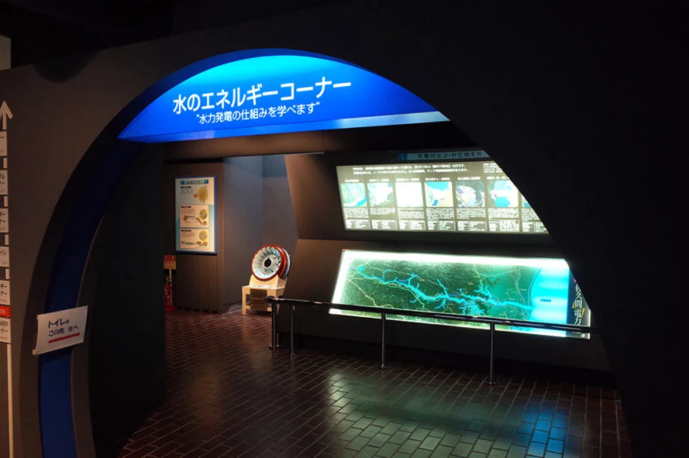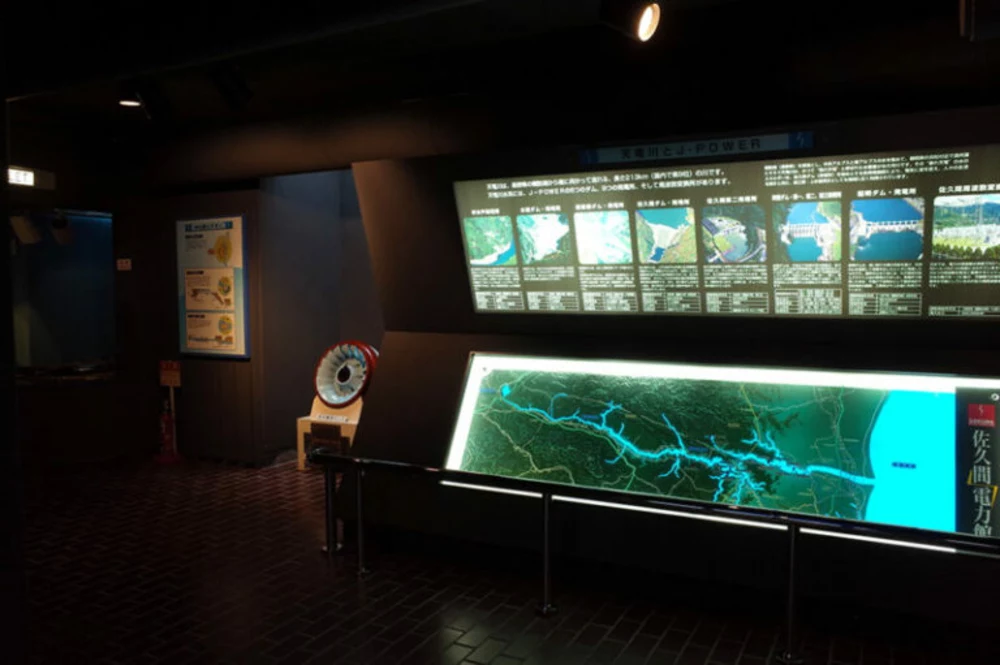 入館料は無料で、佐久間ダムの完成までの歴史やダム・水力発電の仕組みが模型や図解でわかりやすく解説されていて、子供でも楽しみながら学べる施設です。