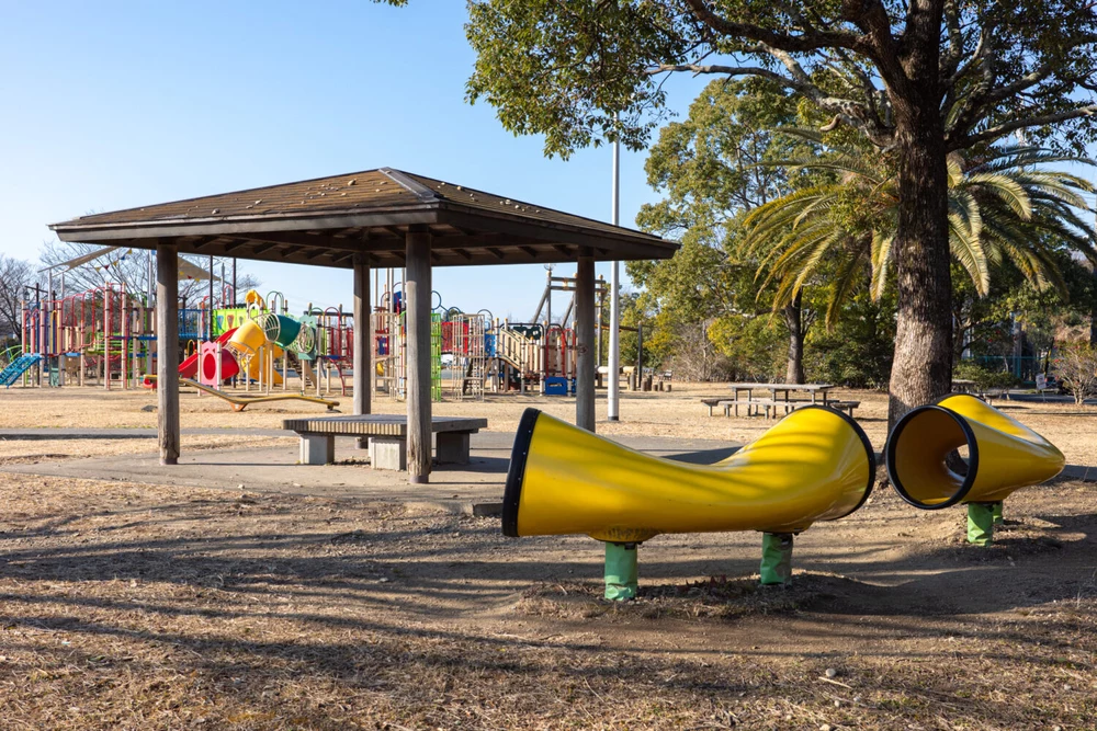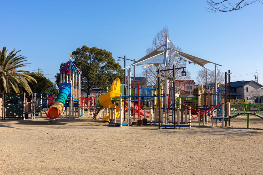 佐鳴湖の西側に位置する閑静な住宅地として人気の大平台。そんな大平台にある、西岸中央公園には豊富な遊具と広大な広場があり、子どもから学生まで幅広い世代が体を動かして楽しめる公園です。豊富な遊具
