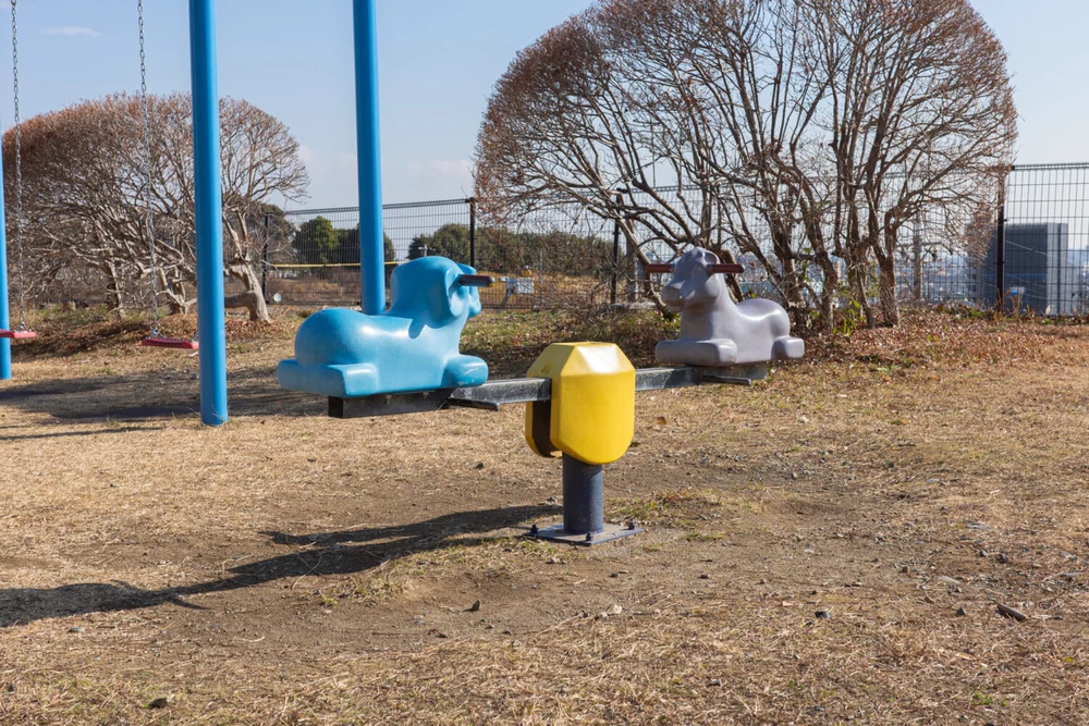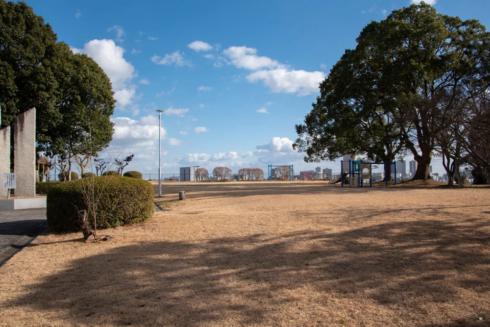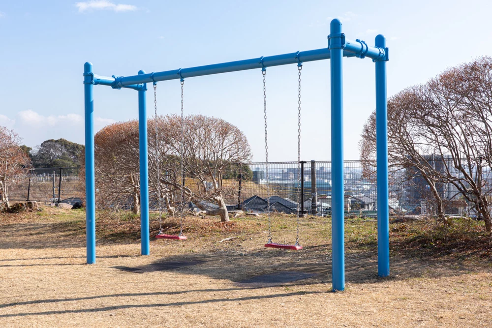 浜松市の公営墓園「中沢墓園」内にある公園です。小さな公園ですが広々とした芝生広場や遊具、クライミングウォールなどがあり、浜松市市街地の穴場スポットです。また、高台に位置するため、浜松市街を一望できる景色も魅力。遊具