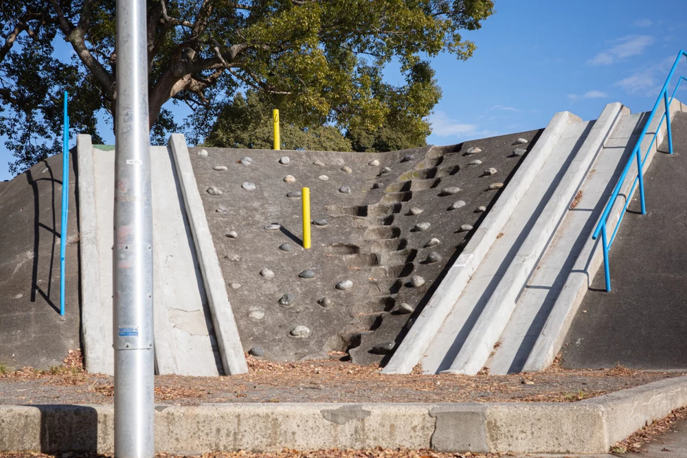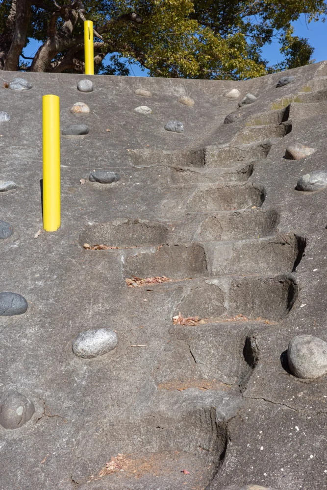 高台の立地を利用したクライミングウォール。手足をしっかり使って、全身運動を楽しんでみましょう。