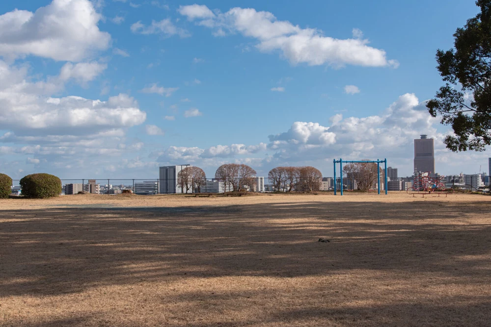 広い芝生広場ですが、住宅地側はフェンスが低いのでボール遊びは注意しましょう。