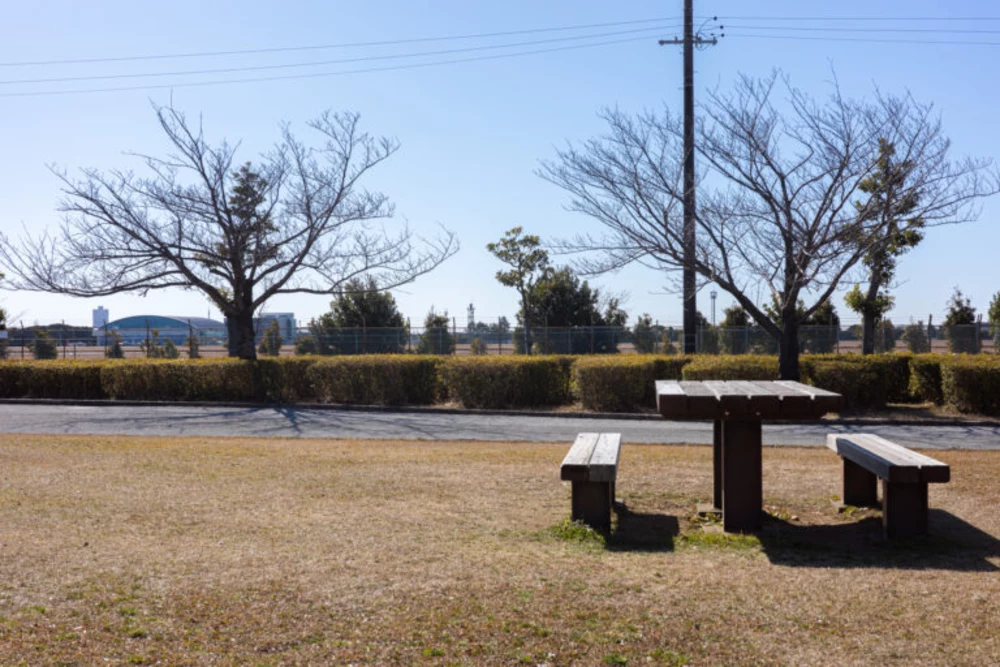 遊具広場の隣にある芝生広場。航空自衛隊浜松基地の隣にある立地なので、道路を挟みますが迫力のある航空機の離着陸が楽しめます。(離着陸が見られるのは平日のみです)