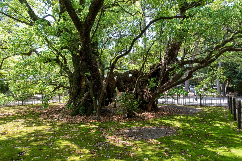 浜松八幡宮の境内で、ひときわ存在感を放っているのが、大きく枝を広げたご神木の楠です。