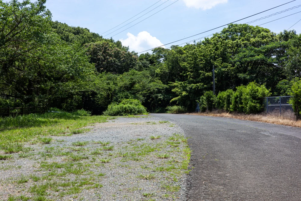 駐車場を見落として一度通り過ぎてしまいましたが、写真左側に写っている砂利の部分が駐車場です。