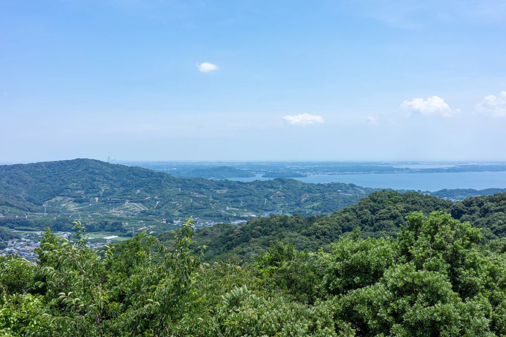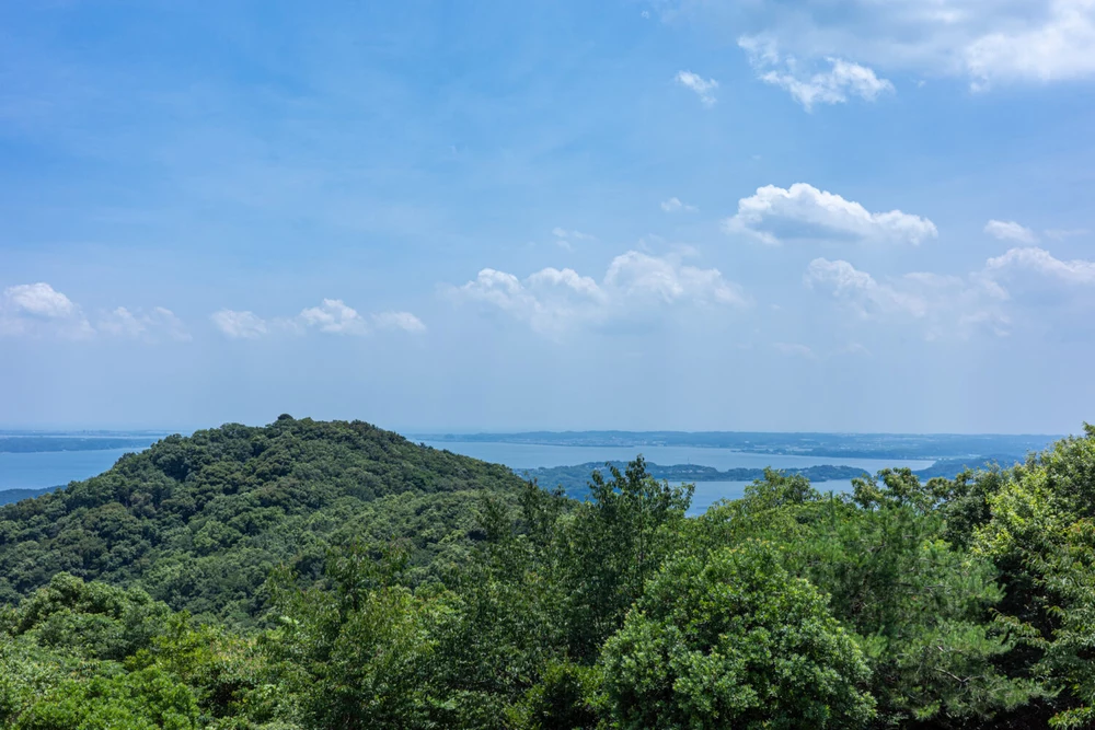 夏の時期は木々が葉を茂らせるため、浜名湖全体の景色がやや見えにくく感じます。ただ、浜名湖と猪鼻湖(浜名湖の支湖)を隔てる大崎半島の地形はしっかり見渡せます。