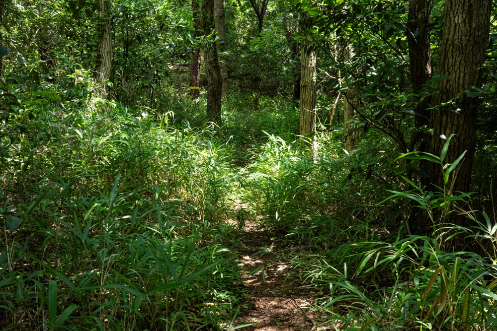 道中すべてが写真のように緑が深いわけではありませんが、夏場は虫よけが必須です。ときには草をかき分けながら(やや大げさですが)進みます。