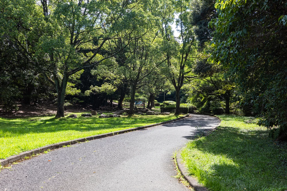 園内を一周すると約1km。コースの半分ほどはゆるやかな坂道になっているため、体力づくりのウォーキングにも最適です。また木陰も多く、夏でも比較的歩きやすいのがうれしいポイントです。