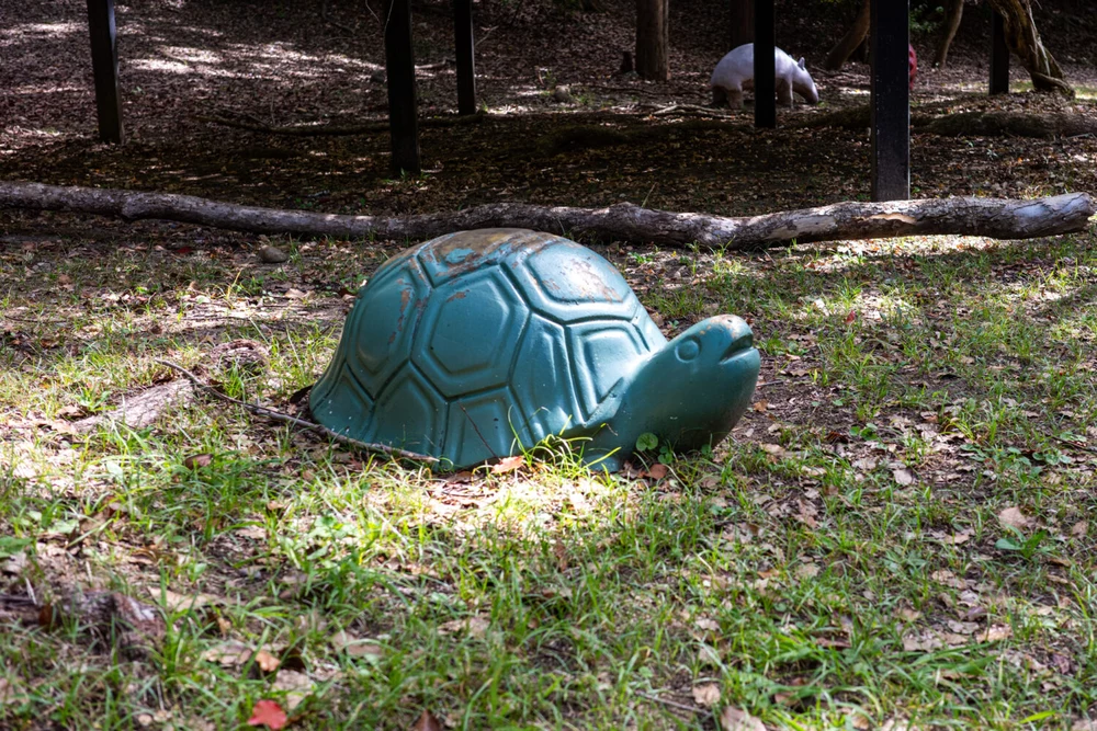 遊具はジャングルジムとブランコに加え、今ではあまり見かけなくなったカラフルな動物の遊具が並んでいます。