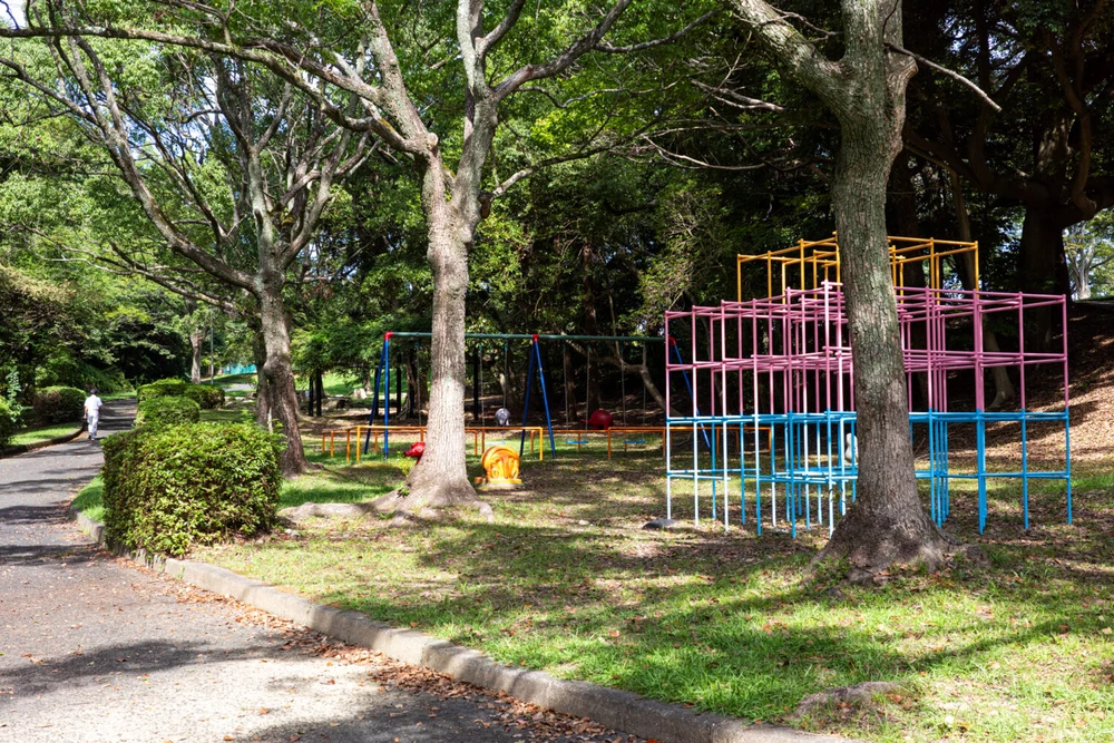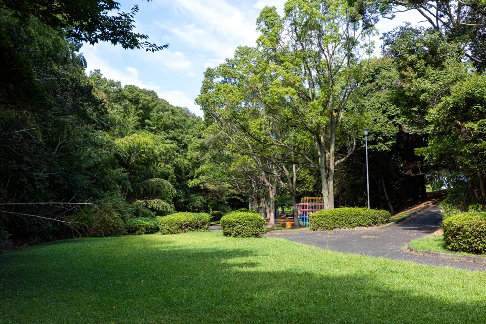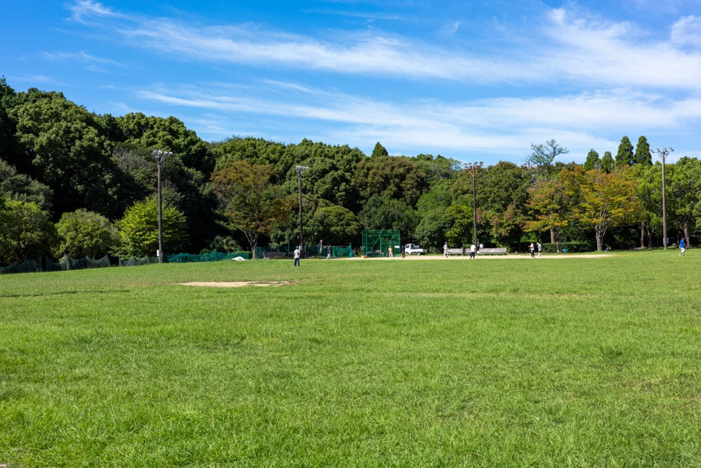 有玉緑地は東名高速・三方原スマートIC近くにある自然豊かな公園です。敷地内にはナイター設備付きのソフトボール場をはじめ、樹木に囲まれたアップダウンのある散策コースや芝生広場、小さな池が広がり、のんびりと自然を楽しめます。遊具は少なめですが、静かな環境でウォーキングやピクニック、スポーツを楽しむ市民の憩いの場となっています。駐車場、トイレも完備されています。木陰の多いウォーキングコース